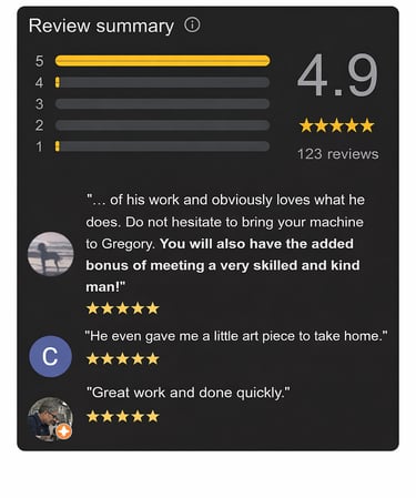 Que votre machine ait des problèmes de tension, de synchronisation, de moteur, ou qu’elle nécessite simplement une mise au point, Gregory s’assure qu’elle fonctionne à nouveau parfaitement.